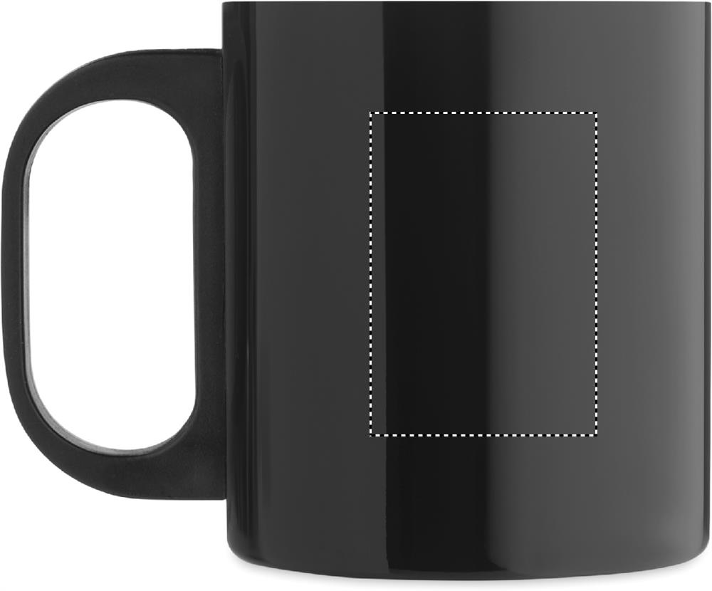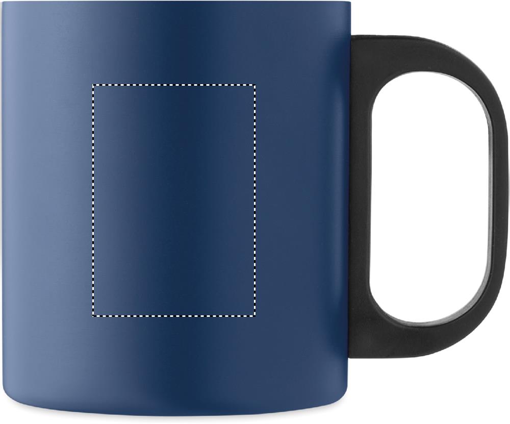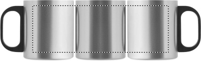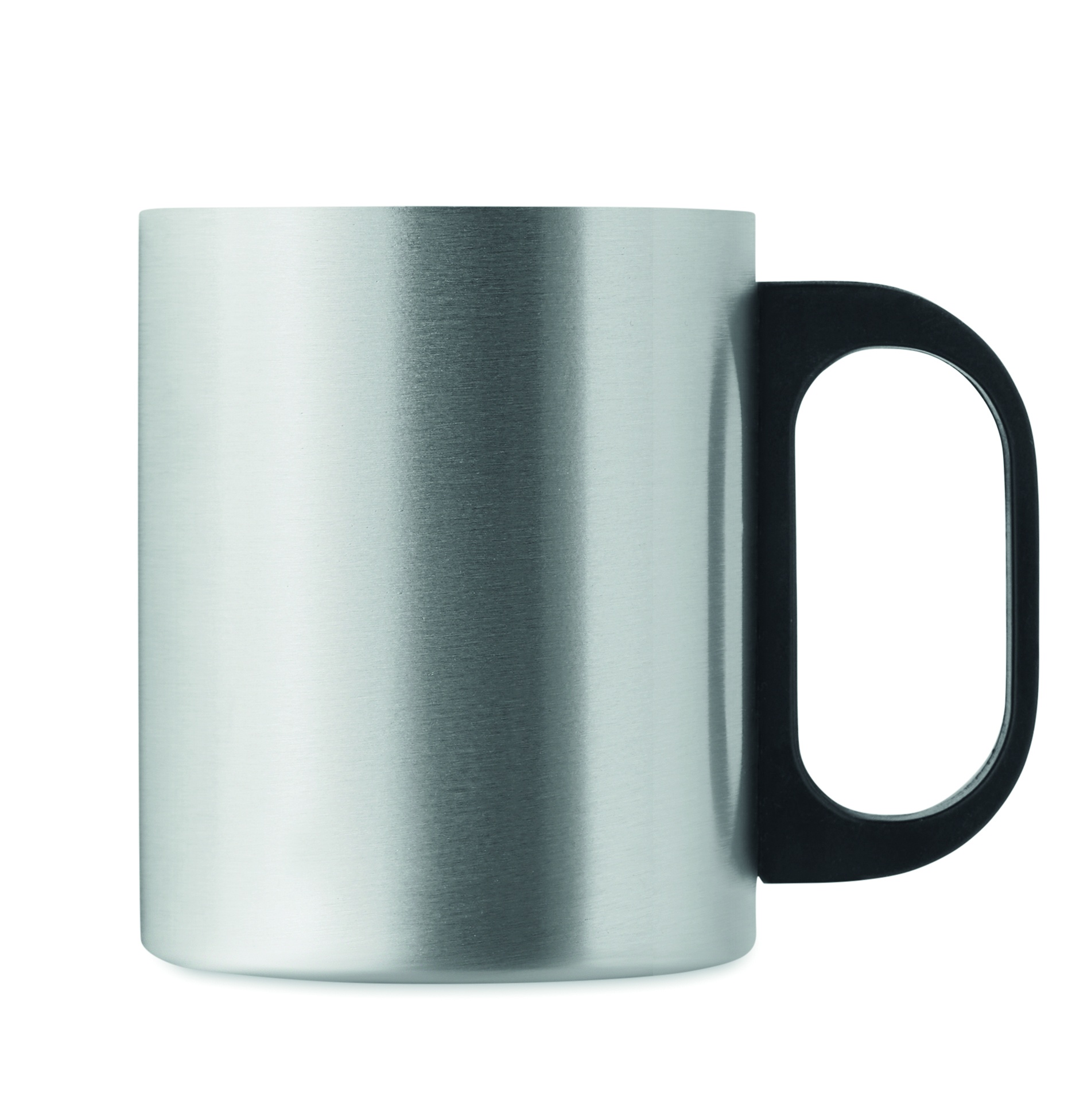Dubbelväggig mugg i rostfritt stål med PP-handtag. Kapacitet: 300 ml.
