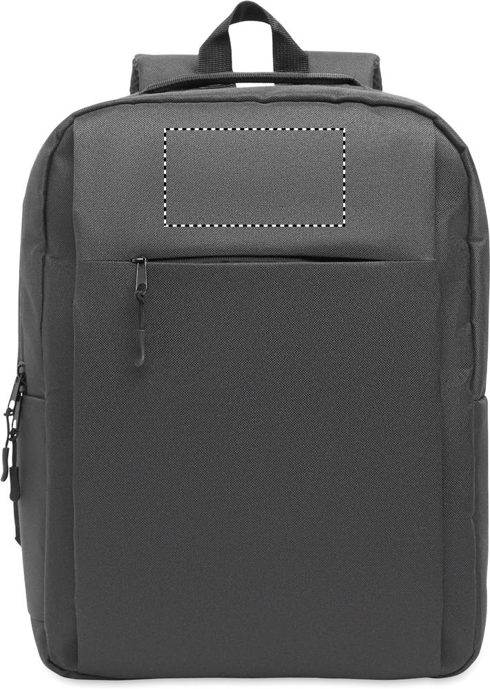 Logotrade reklamprodukter bild: En 15''  ryggsäck tillverkad av 600D RPET-polyester med 210D-foder och anpassningsbar tryckning