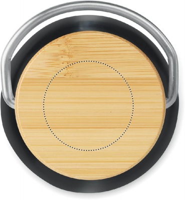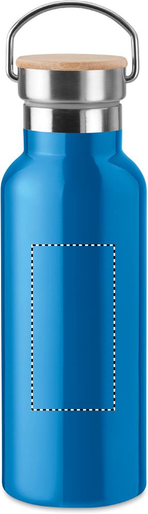 Termos flaska i rostfritt stål med dubbla väggar för varma eller kalla drycker med lock i Bambu. Volym 500ml. Sublimeringstryck endast på vit produkt. Läckagefritt.
