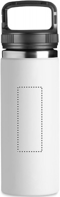 Termoflaska i rostfritt stål med dubbelvägg och krokhängare på locket. Kapacitet: 500 ml för varma eller kalla drycker.
