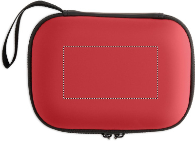 Första hjälpen-kit i hårt PU-fodral. Innehåller 2 handskar, 1 filt, 1 tejp, 2 bandage, 1 sax, 4 tops, 10 plåster och 6 rengöringsservetter. Ej tillgänglig för försäljning utanför EU.