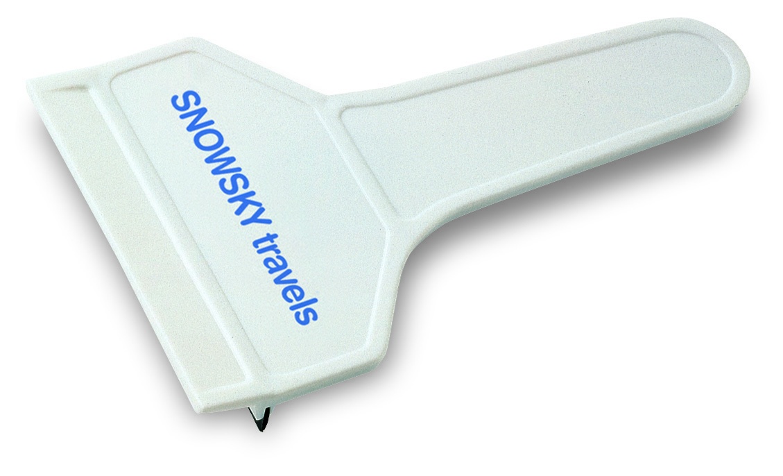 Isskrapa med handtag. En skrapa för hård is och en för vattendroppar.