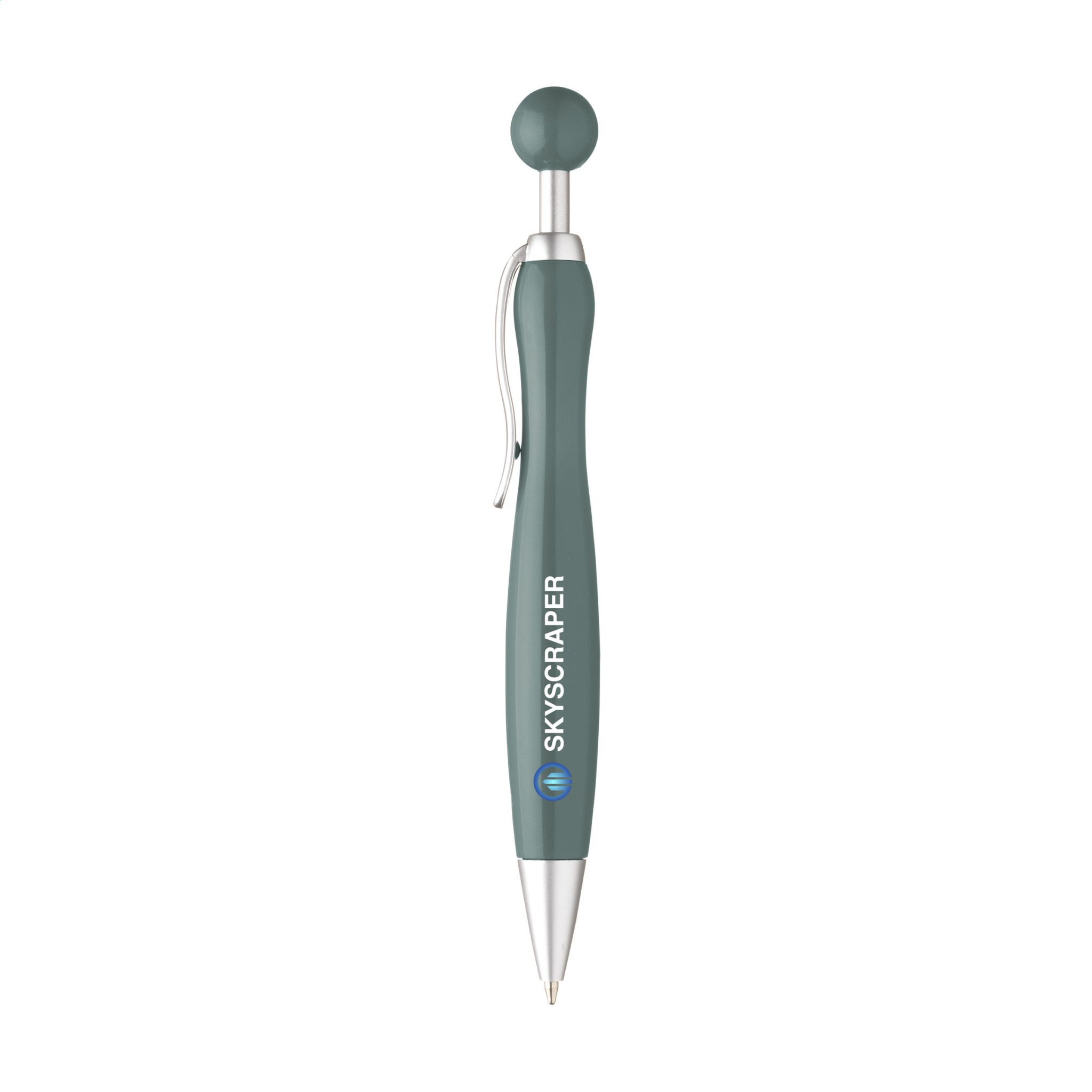 Kulspetspenna med blått bläck med sfärisk tryckknapp.