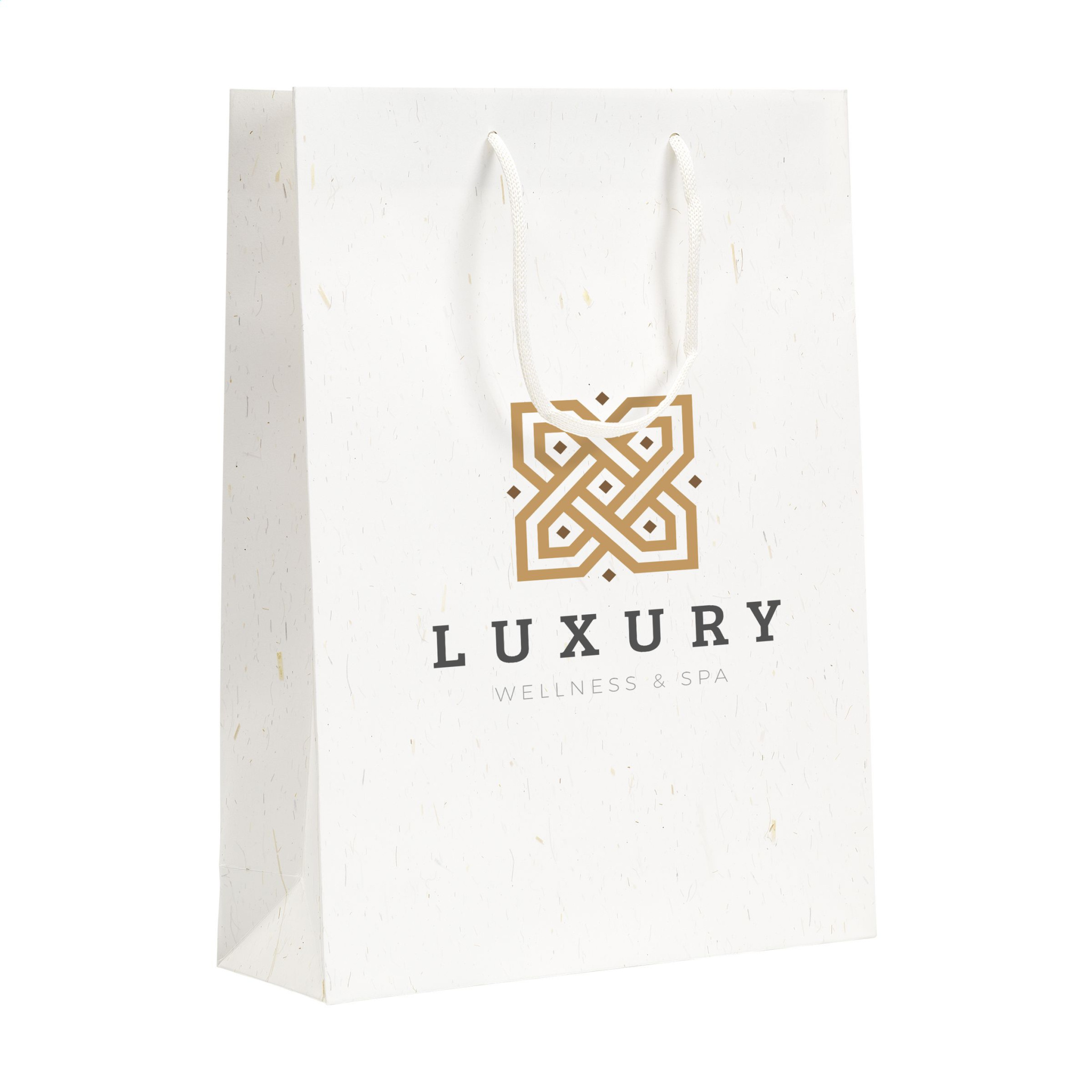 WoW! Rejäl presentpåse av ECO-papper (storlek L) gjord av återvunnet papper med halmfibrer (180 g/m²). På grund av användningen av naturfibrer är varje påse unik och ojämnheter i papperet är synliga. Detta ger produkten ett vackert naturligt utseende. Varje väska har två korta, pappersvävda bäröglor, en vikt botten och en sidovikning. Lämplig för alla typer av marknadsföringsändamål. Inga träd huggs ner för tillverkningen av denna väska.