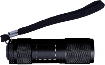 9 LED aluminium ficklampa. Levereras med 3x AAA batterier och en avtagbar axelrem. Levereras i presentask i plåt.