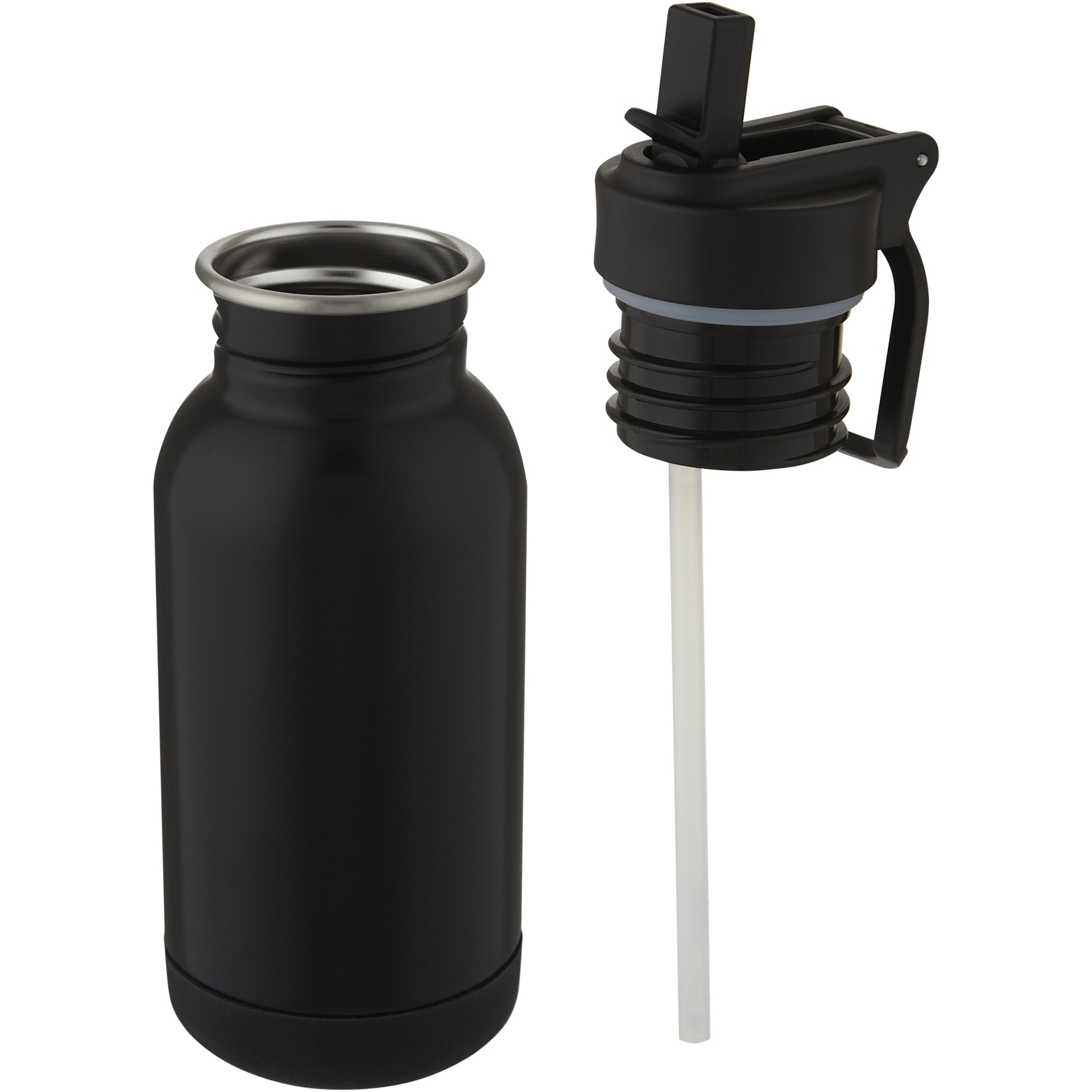 Lina 400 ml sportflaska i rostfritt stål med sugrör och loop, Helt svart
