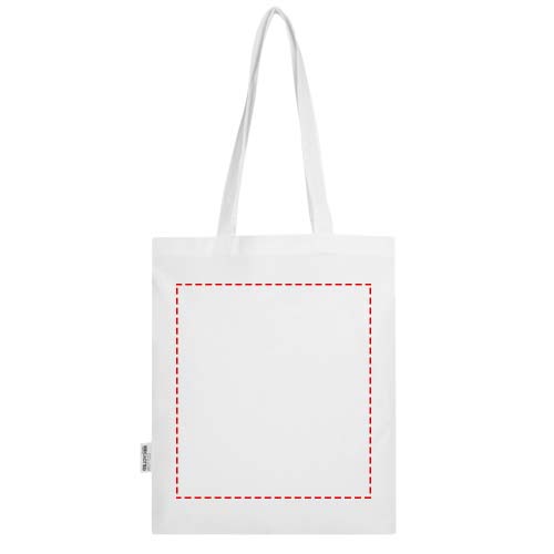 Tygväskan Madras Blend, som är tillverkad av 60 % GRS-certifierad återvunnen bomull och 40 % GRS RPET, är den perfekta väskan att ge bort vid evenemang, konferenser eller som en shoppingväska för ett fåtal matvaror. Bomullstätheten på 140 g/m² bomull gör väskan robust, långvarig och lämplig att bära med tunga föremål i huvudfacket. Med sina 30 cm långa axelhandtagen är denna tygväska lätt att bära med sig. De tillgängliga brandingmetoderna för denna tygkasse är också GRS-certifierade, vilket säkerställer att hela leveranskedjan är transparent och certifierad. Tillverkad i Indien. Klarar upp till 5 kg vikt. Volymkapacitet: 7 liter.