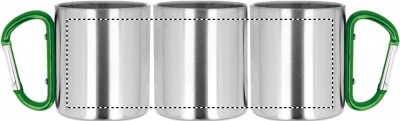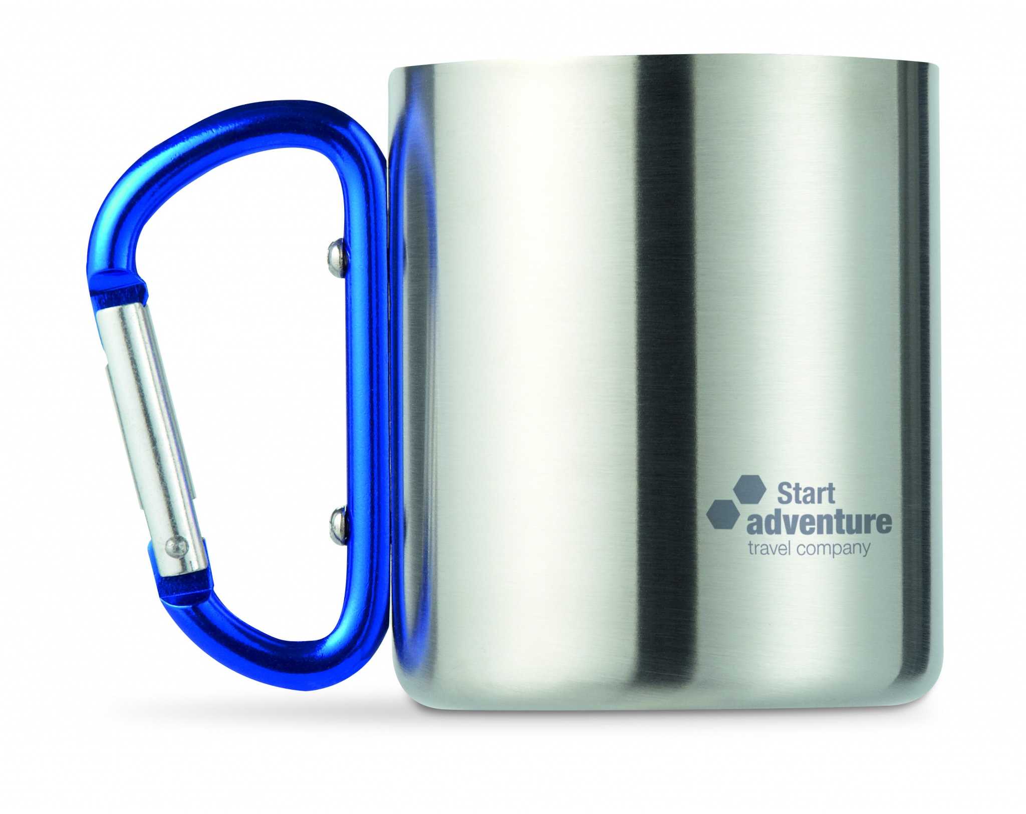 Rostfri stålmugg med karbinhake som handtag. Dubbel vägg.