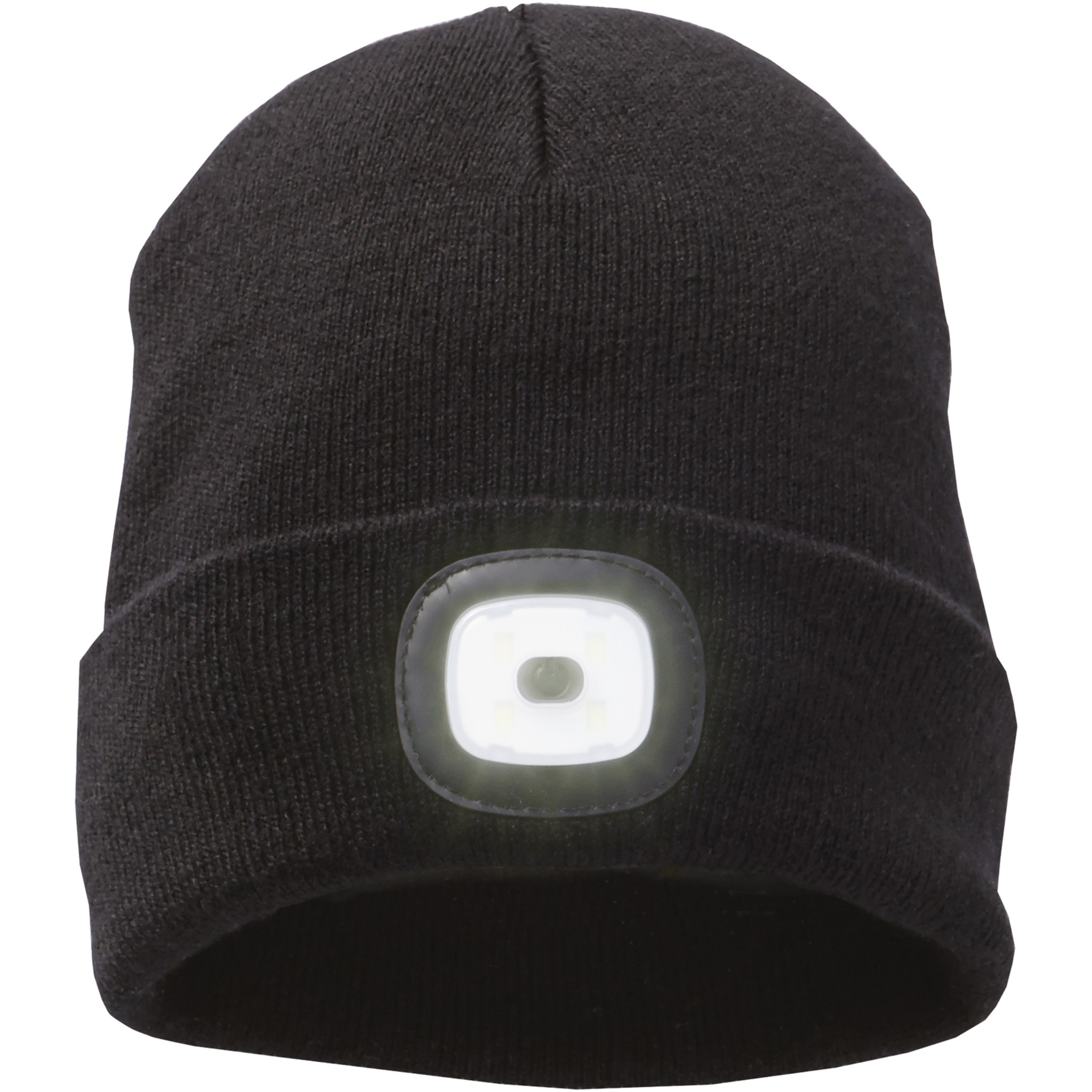 Mighty LED stickad mössa - en perfekt kombination av värme och funktionalitet. Denna mössa med dubbla lager är tillverkad av tjock akryl i 1x1 ribbstickning och är både mysig och värmande. Men det som utmärker mössan är den innovativa avtagbara LED-strålkastaren med tre ljusstyrkeinställningar. Den är bekvämt undanstoppad i den omlottvända manschetten och kan enkelt tas av för tvätt och laddas med en USB-A-kabel (ingår ej). Oavsett om du trotsar kylan eller behöver extra synlighet i mörkret är den här mössan din pålitliga följeslagare på alla äventyr. Lyft din vintergarderob med den stickade mössan Mighty LED, där mode möter funktion på ett sömlöst sätt.