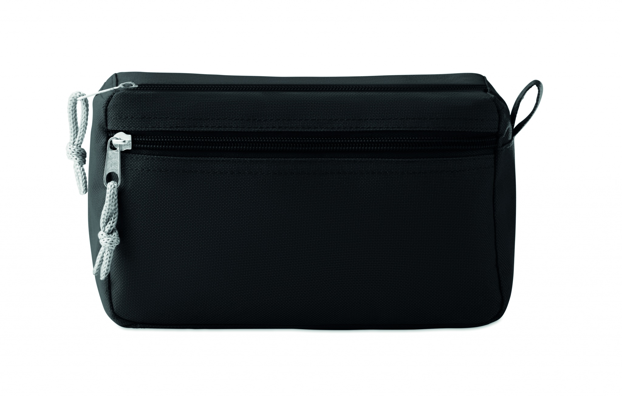 Necessär med frontficka och ''hangerloop''. 600D polyester med PPE-baksida.