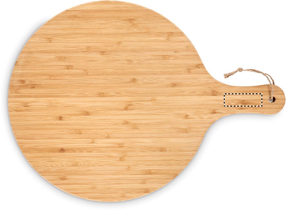 Skärbräda i bambu med användarvänligt serveringshandtag. Med jutehängare. Ø31 cm.