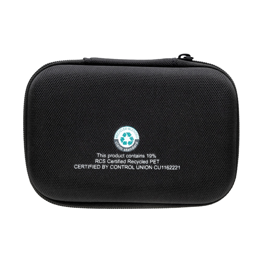 3 delar 20W snabbladdningsset för mobila enheter och andra små enheter. Med EU-adapter med 20W USB C-port, 5.000 mAh powerbank och 120 cm 60W snabbladdningskabel (USB C till USB / Lightning) i återvunnen TPE. Kabeln stöder dataöverföring och även laddning av större enheter som laptops. Adapter, powerbank och kabel tillverkade av RCS-certifierad återvunnen PC, ABS och återvunnen TPE. Fodral av RCS-certifierad återvunnen PET medföljer. Totalt återvunnet innehåll i hela setet: 59% baserat på total produktvikt. RCS-certifieringen säkerställer en helt certifierad leveranskedja för de återvunna materialen. Levereras i FSC®-förpackning. PVC-fri. Input väggladdare AC 100-240V 50/60Hz 0,6A; Output väggladdare USB-C :5,0V⎓3,0A,9,0V⎓2,22,12,0V⎓1,67A (20W Max). Output powerbank 5V⎓2,4A -USB-C input: 5V⎓2,4A
