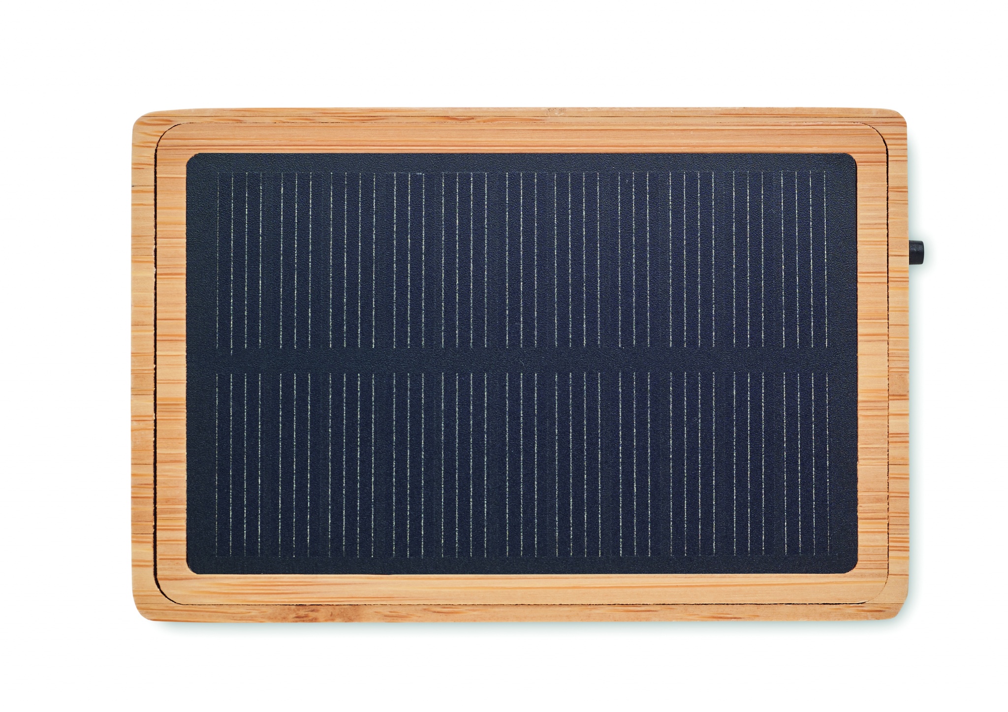5.0 trådlös 3W solcellsdriven högtalare med bambuhölje. 1 uppladdningsbart Li-Ion-batteri på 500 mAh. Speltid ca 4 timmar.