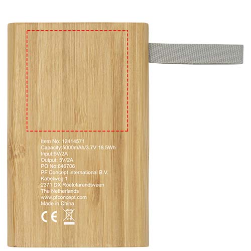 Bambu powerbank som ger 5 000 mAh extra ström för mobiltelefoner eller andra digitala enheter. Den har LED-indikatorlampor och ett band i väv av RPET-material. Förpackad i en presentförpackning och levereras med en bruksanvisning (båda tillverkade av hållbart material).Micro-USB laddningskabel medföljer. Eftersom bambu är en naturprodukt kan det finnas små variationer i färg och storlek per objekt, vilket kan påverka det slutliga dekorationsutfallet.