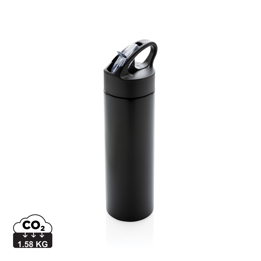 0,5L vattenflaska i SS, kork i PP med sugrör och praktisk öppning.