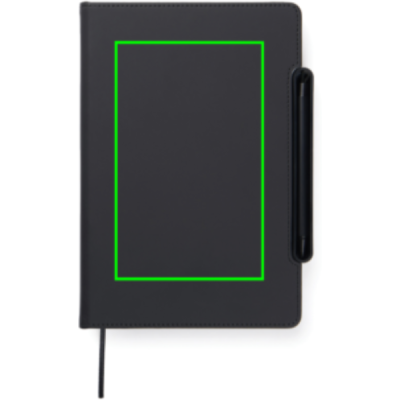 Upptäck den ultimata anteckningsboken som förenklar din vardag med en smart 4-i-1-lösning som kombinerar funktionalitet, flexibilitet och design. Tillverkad av RCS-certifierat återvunnet papper med ett omslag i Baltimores klassiska, matta PU finish gör den lika visuellt tilltalande som funktionell. En magnetisk linjal fungerar som pennhållare och inkluderar en matchande kulspetspenna med blått bläck. Pennhållaren kan enkelt omvandlas till ett mobilställ som är integrerat i anteckningsbokens struktur. Insidan är utrustad med kortfack samt ett utbytbart anteckningsblock för långvarig användning. Blocket innehåller 80 ark / 160 linjerade sidor och erbjuder generöst med utrymme för anteckningar, planering och idéer. Den perfekta följeslagaren för möten, resor och en organiserad vardag. Totalt återvunnet innehåll: 70% baserat på produktens totala vikt. Certifierad av Control Union, CU1162221.
